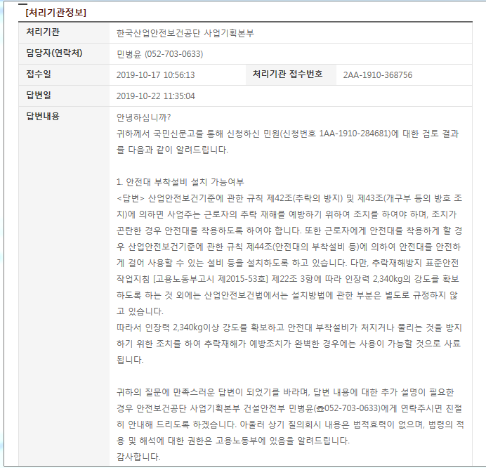 1. 와이어로우프 또는 합성섬유로우프를 사용하여야 한다.