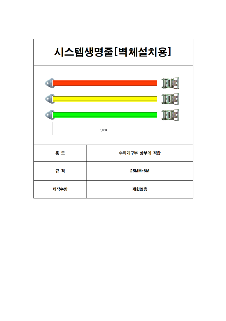 생명줄 | 시스템생명줄[벽체설치용] 페이지 정보 작성자 관리자 작성일25-09-23 13:03 댓글0건 관련링크 이전글 다음글 목록 본문 창호, E/V 등 수직개구부 벽체 상부 설치용 댓글목록 등록된 댓글이 없습니다. 이전글 다음글 목록