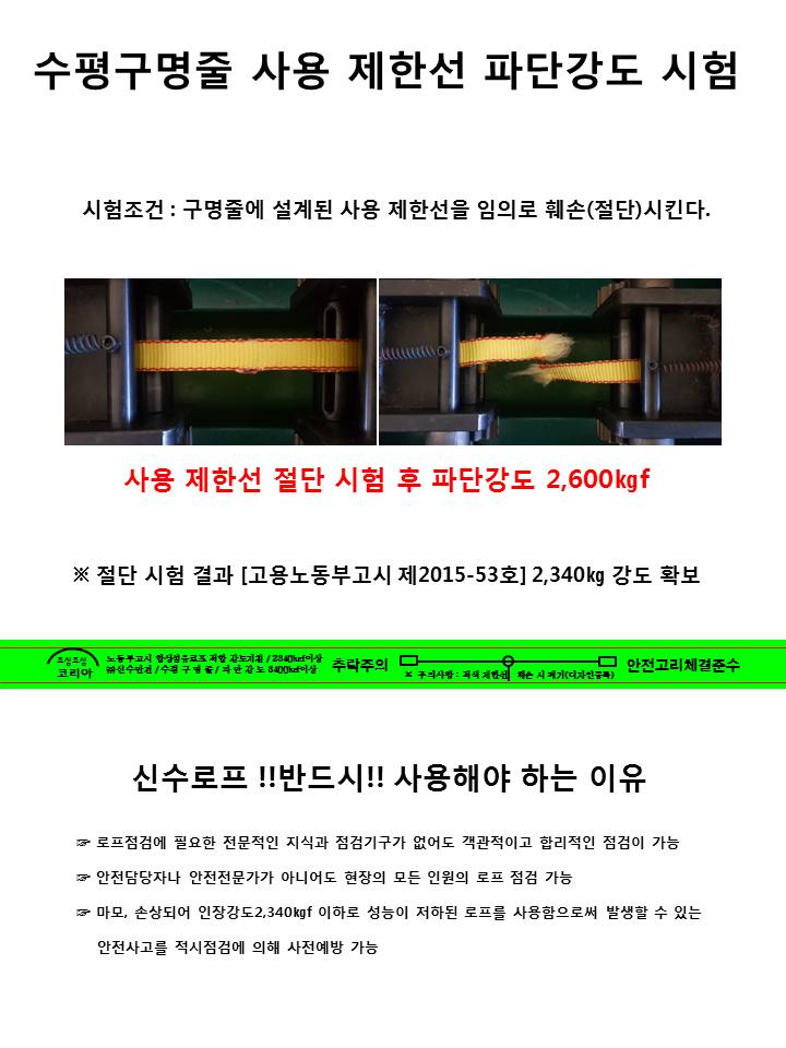 용도 : 고소작업시 안전대의 수평 지지로우프